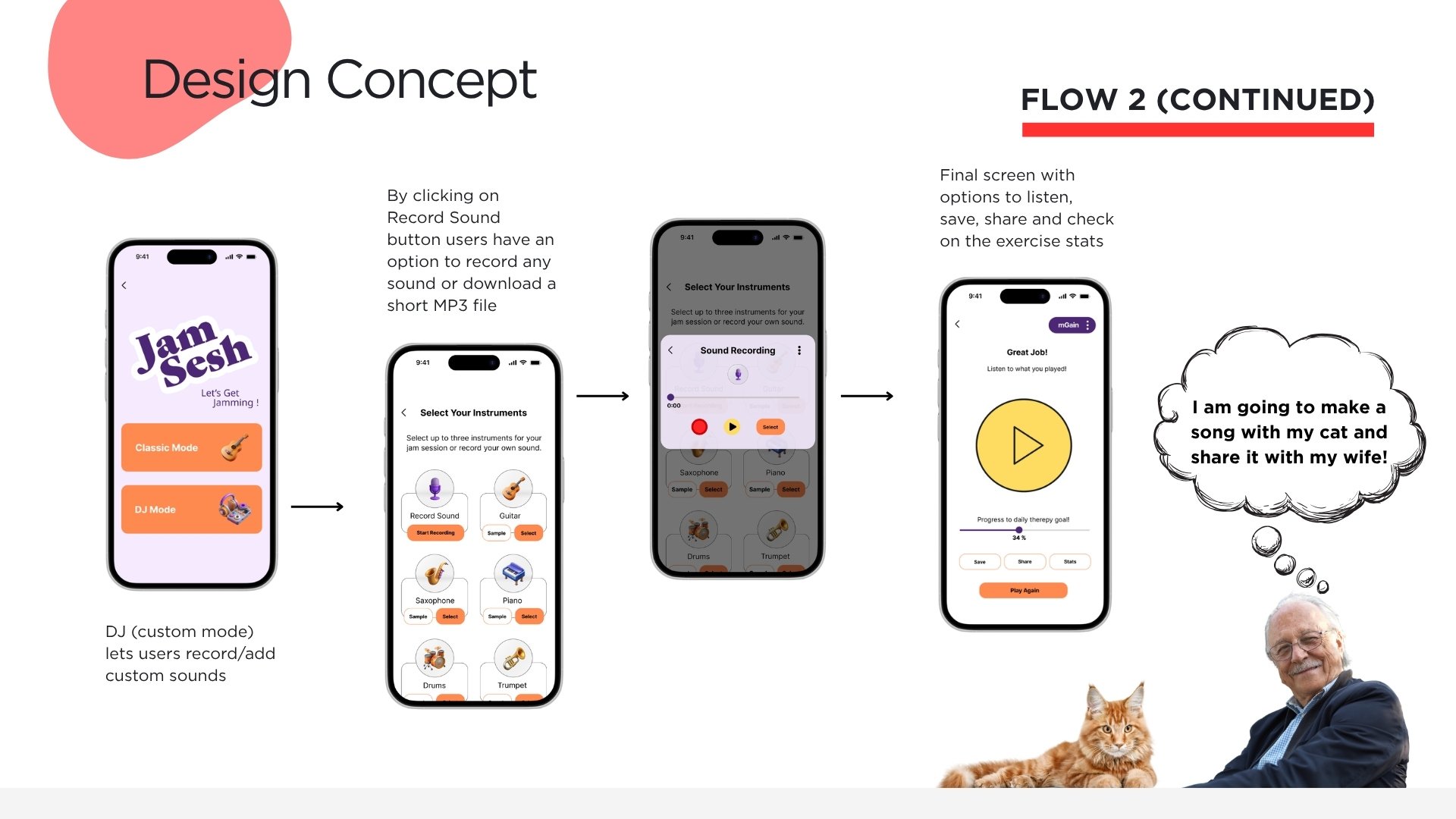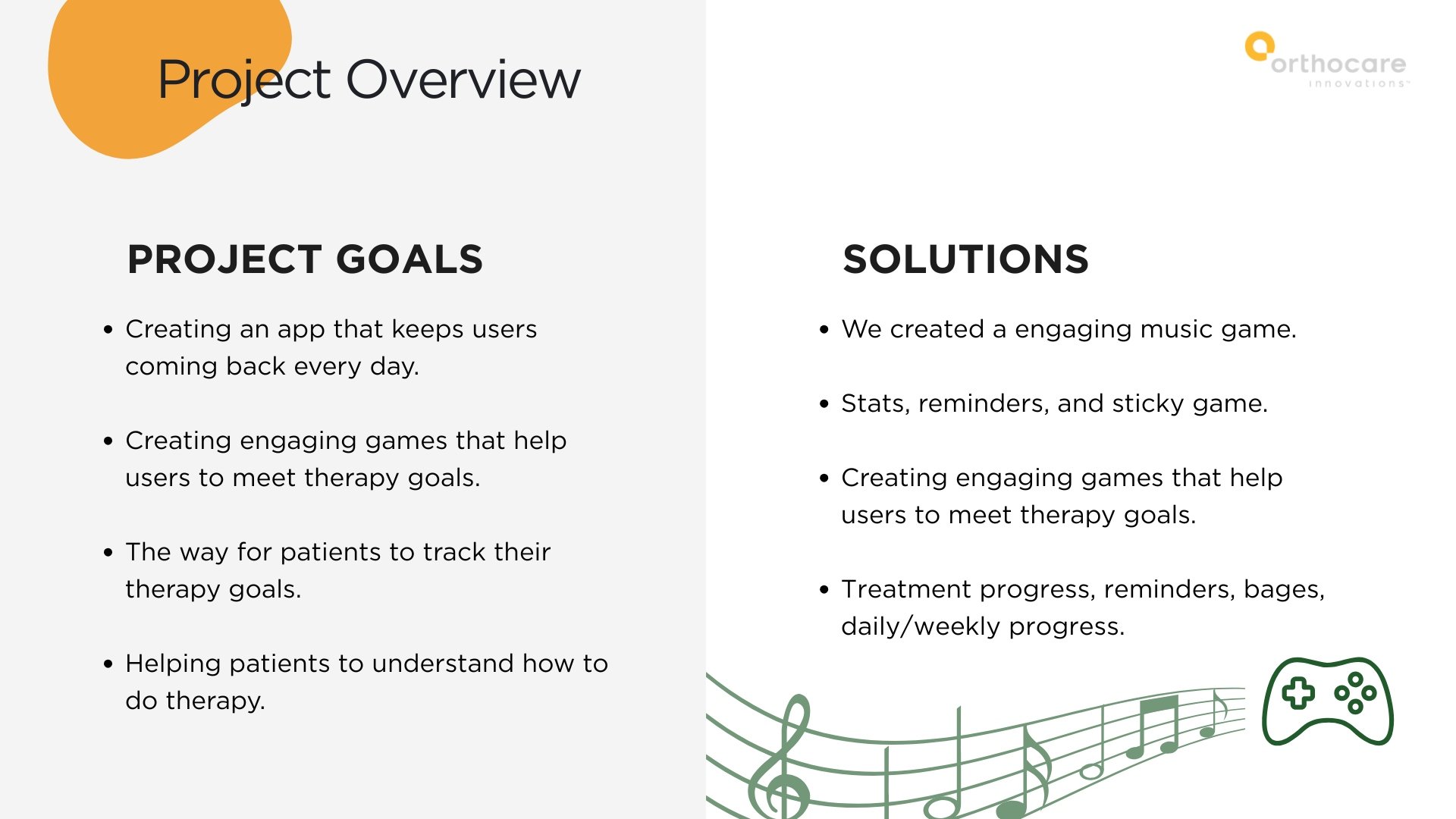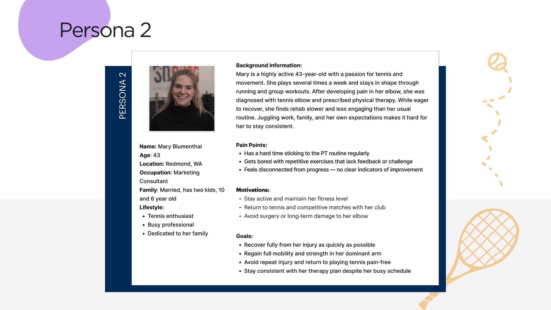 Through user research and persona development, we identified that adults aged 40–70 often struggle with consistency due to slow visible progress, lack of immediate feedback, and unclear exercise guidance. Based on these insights, I helped design a solution centered around daily engagement loops, progress milestones, tutorial flows, and an interactive music-based therapy game experience.
