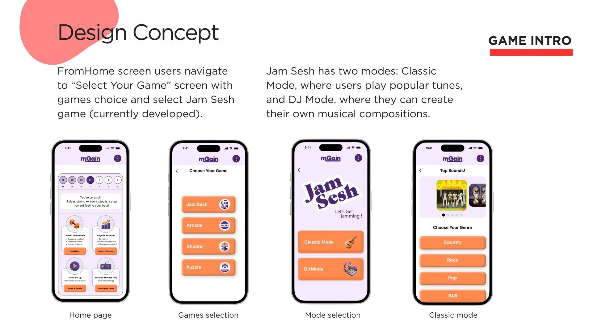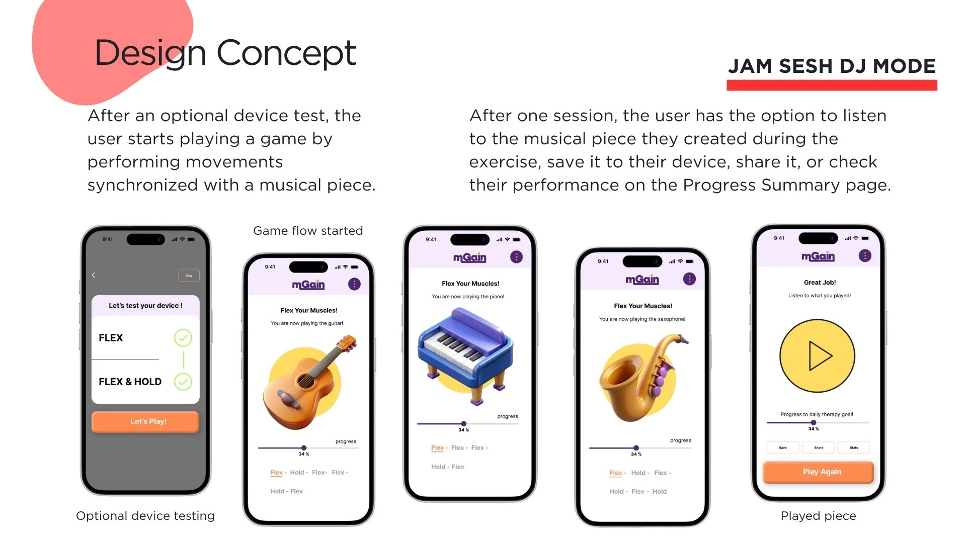 a music-driven rehabilitation game (“Jam Sesh”)